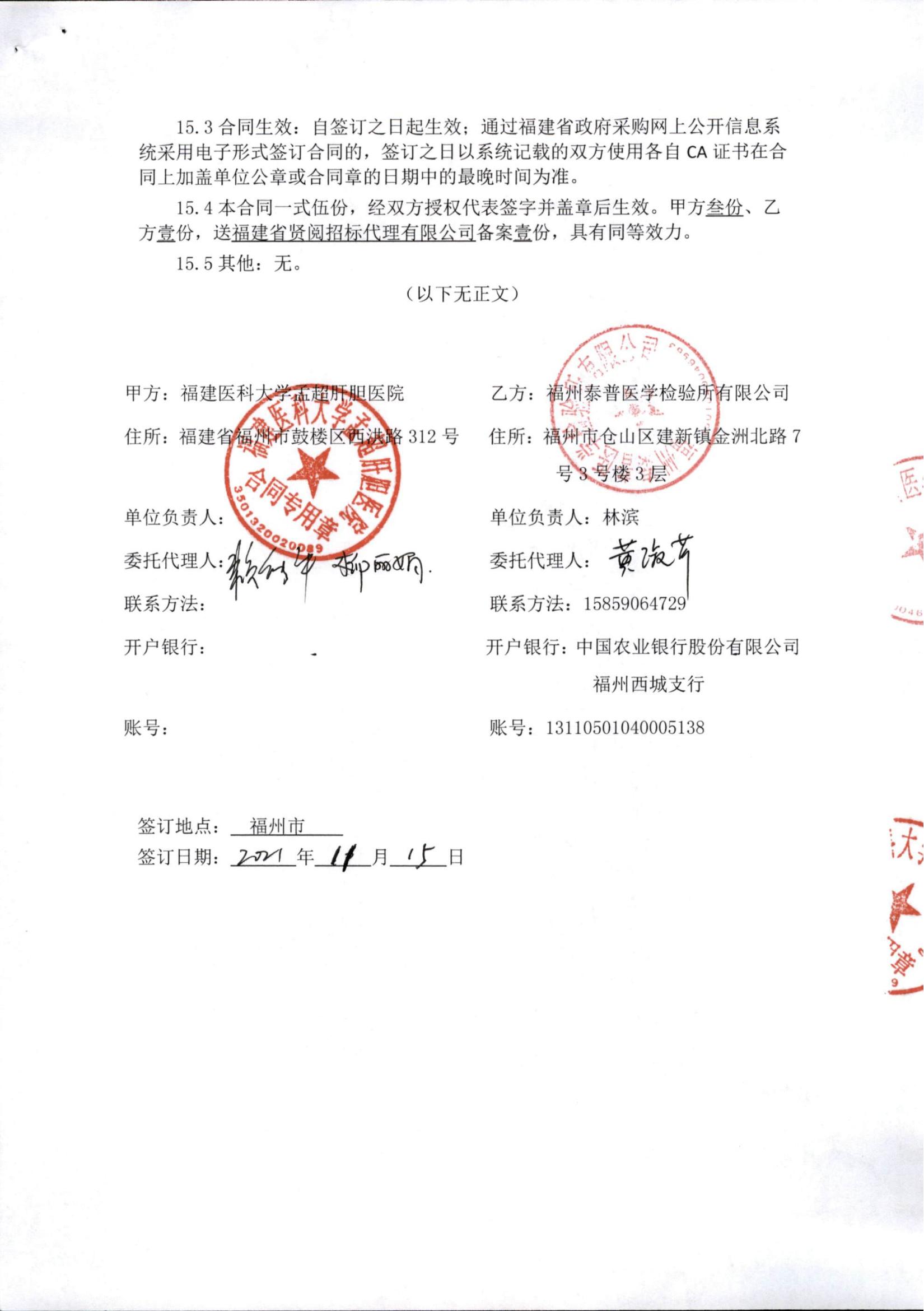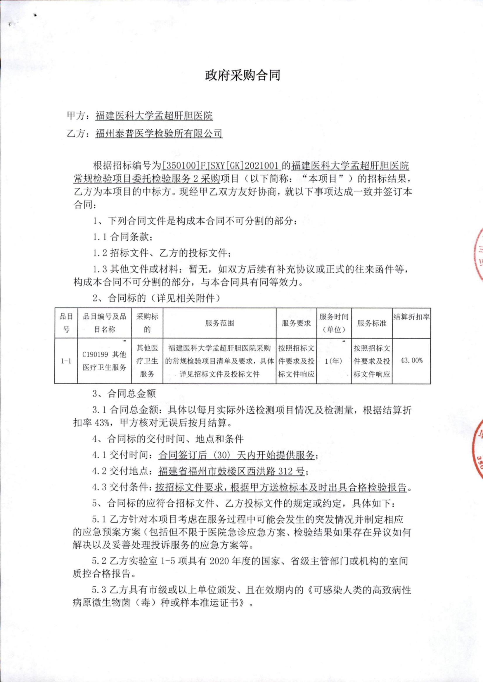 福建医科大学孟超肝胆医院常规检验项目委托检验服务2采购项目政府采购合同公示